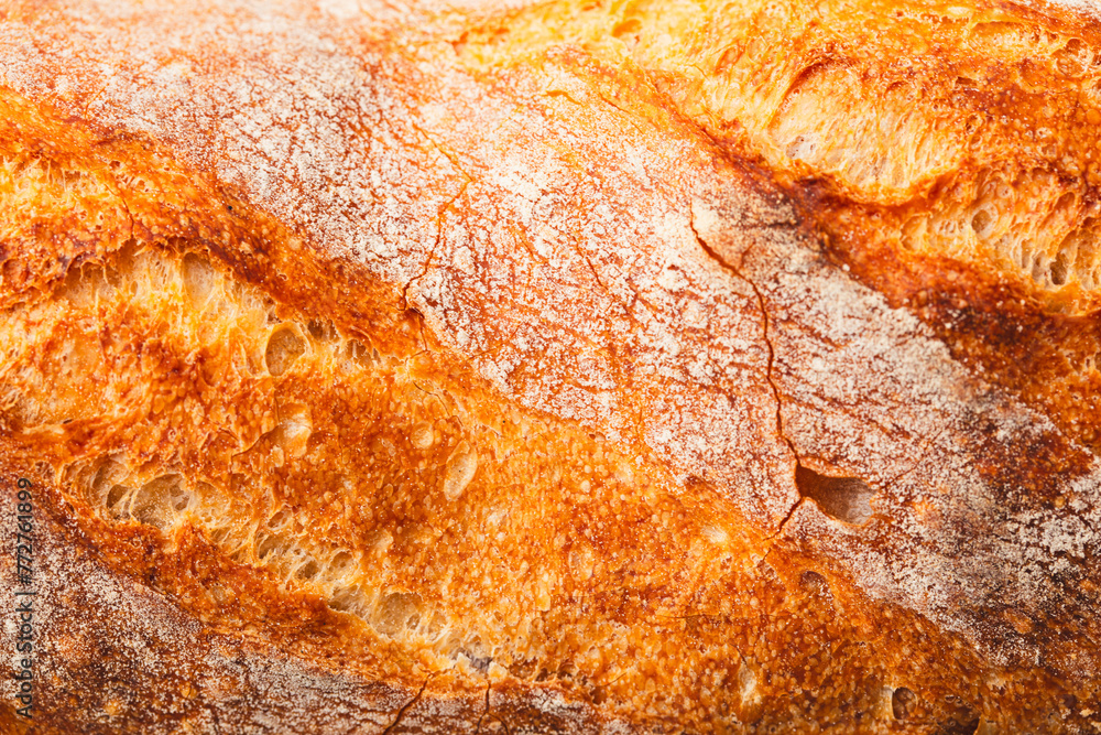 Ruddy crust of bread as an abstract background. Texture
