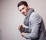 Elegant young handsome man in grey costume.