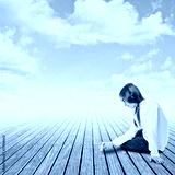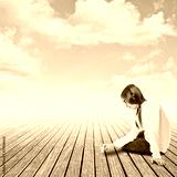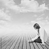 young girl drawing with chalk on a wharf