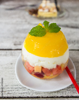 yellow mango panna cotta mixrd fruit