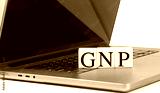 GNP word on wooden block on laptop , business concept