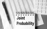 JOINT PROBABILITY text on notebook with chart , pen and calculator