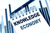 KNOWLEDGE ECONOMY text on notebook on chart with pen