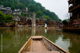 Fenghuang, China - September 30 2015: Boats sail in the river of Fenghuang village in China