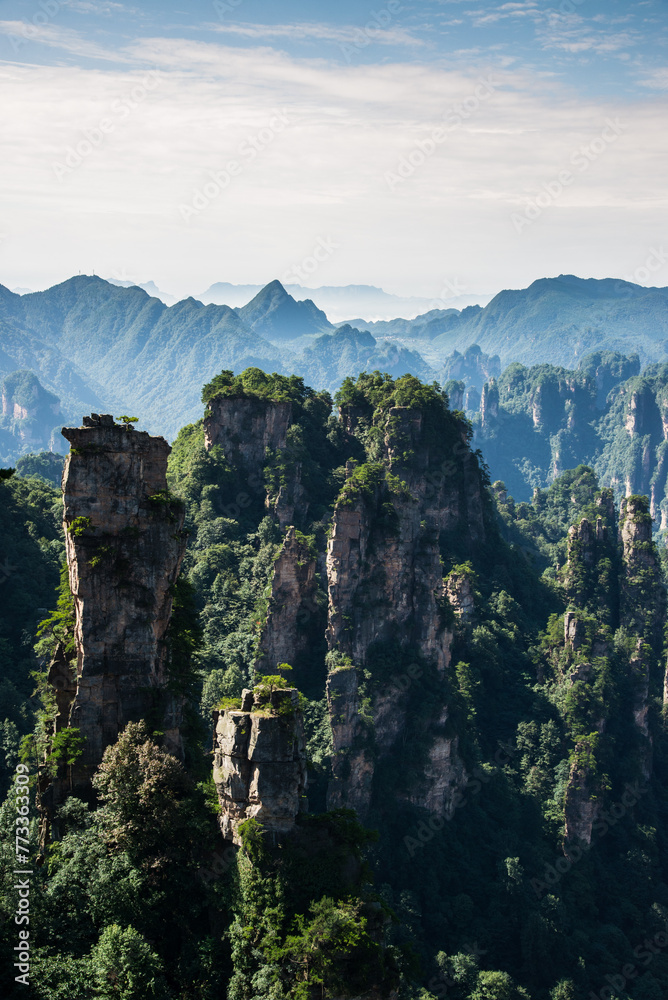 Zhangjiajie, China - September 29 2015: Geological wonders and natural rock pillars in Zhangjiajie National Park in Hunan China