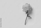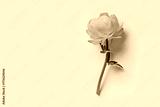 One yellow flower Trollius or Globeflower on yellow color background, copy space, minimal style flat lay, monochrome aesthetic botanical modern still life, natural blooming spring floret
