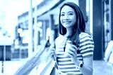 Modern happy asian Female lifestyle fashion portrait. beautiful attractive young woman girl enjoy stylish walk with shopping bag packages on the department store, trendy outfit on shopping mall