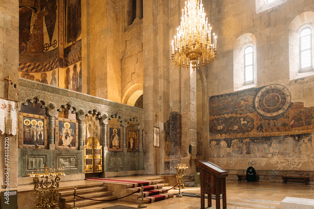 Mtskheta, Georgia. Svetitskhoveli Cathedral Of The Living Pillar, Ancient Georgian Orthodox Church. Fresco, Frescoes.