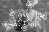 Doctor using virtual touch screen presses acronym: IBS. IBS Irritable Bowel Syndrome Medical concept. Intestinal inflammation, Spasms, Health Care Insurance.