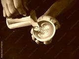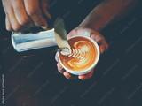cup of coffee latte art in coffee shop
