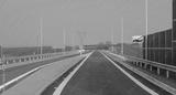 Droga wyjazdowa z miasta - znak wskazujący koniec obszaru zabudowanego. Droga (obwodnica) wylotowa z miasta, po południu w wiosenny dzień. Widoczne ekrany chroniące przed hałasem.