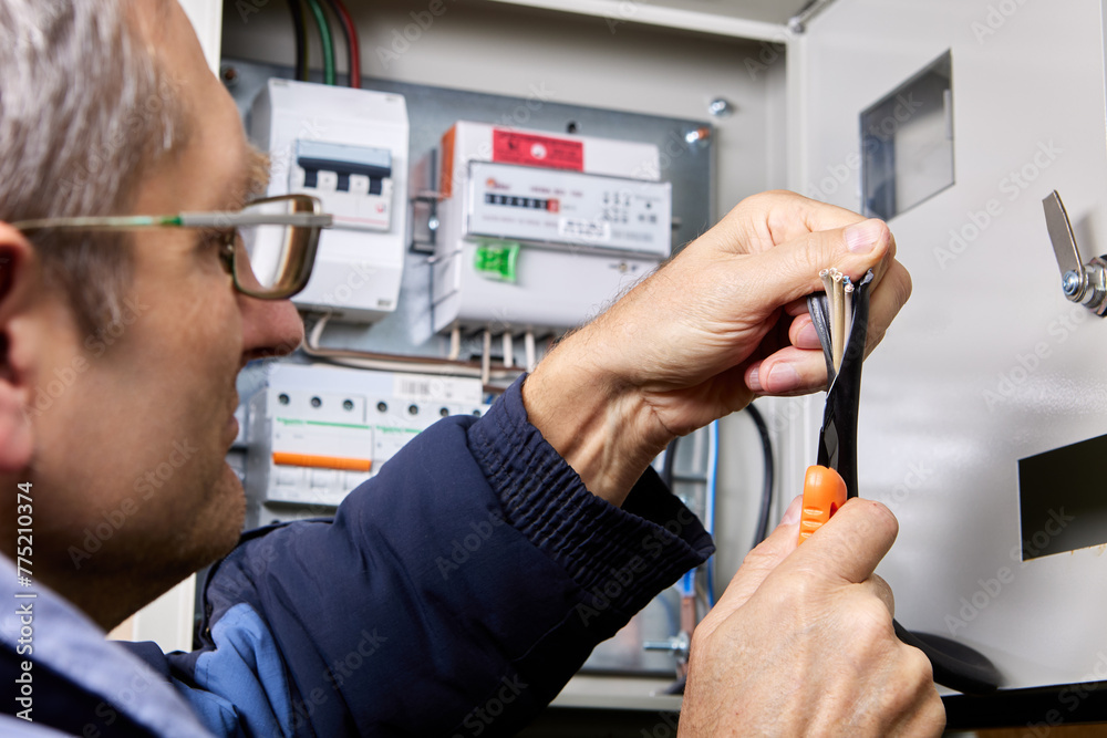 Freeing power cable from outer sheath before connecting wires to fuse terminals.