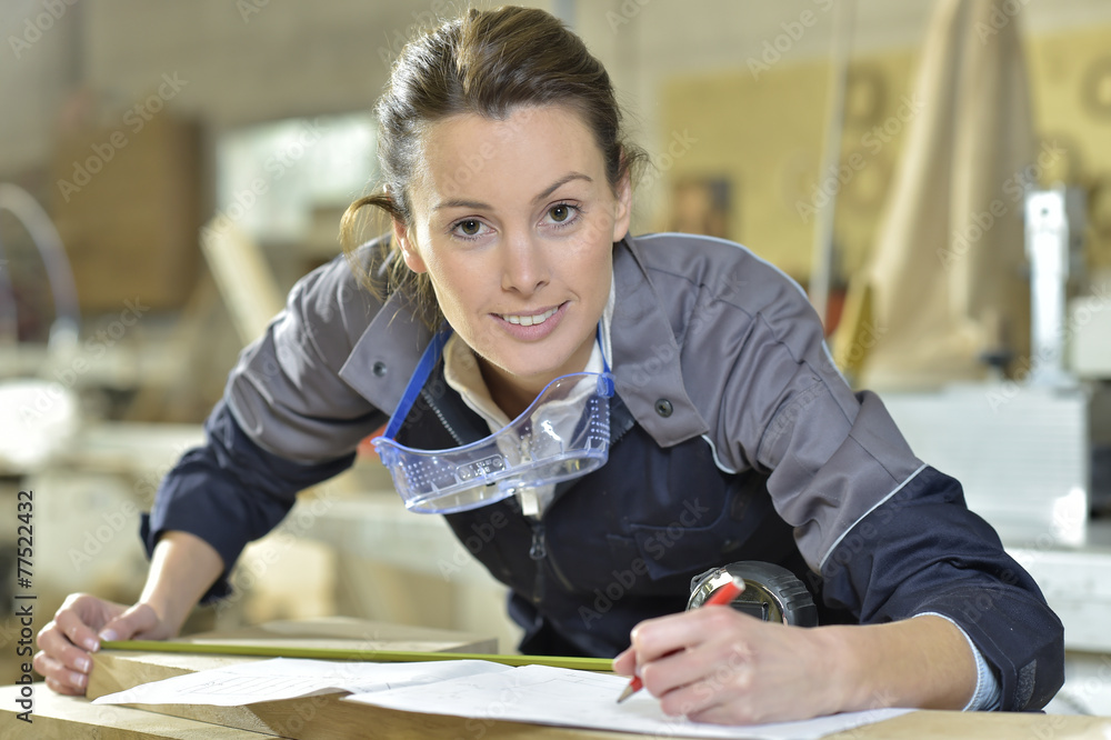 Young woman in carpentry professional training