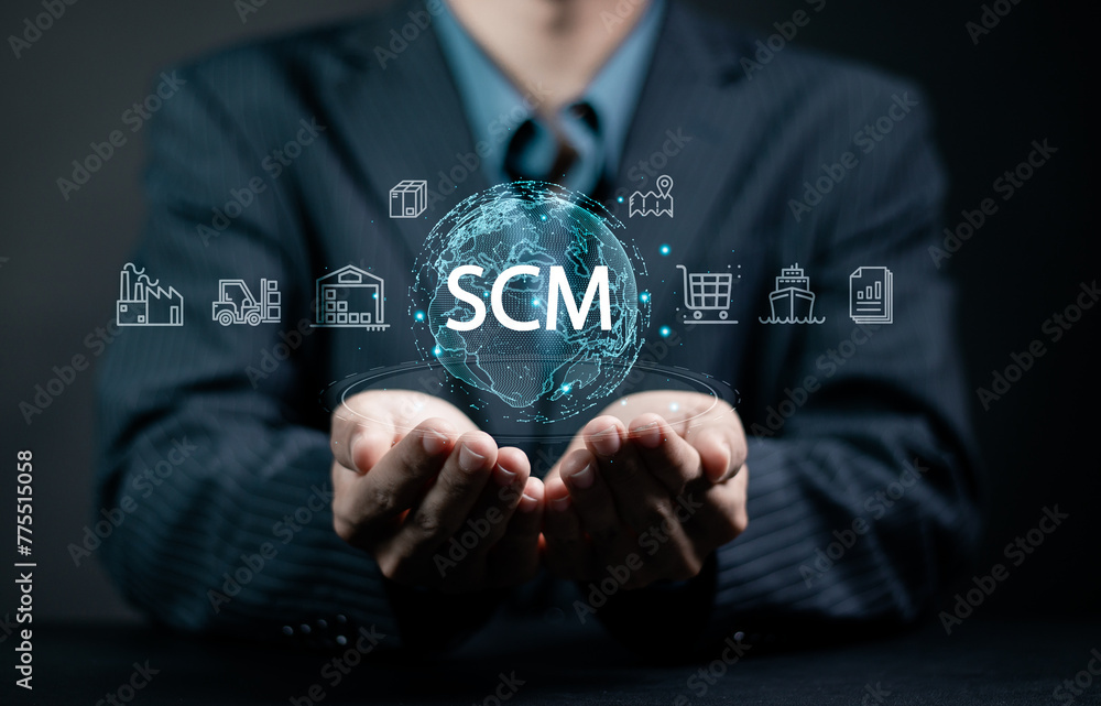 SCM, supply chain management concept, Logistic and transport, organizing and controlling resources to meet the needs of customers.