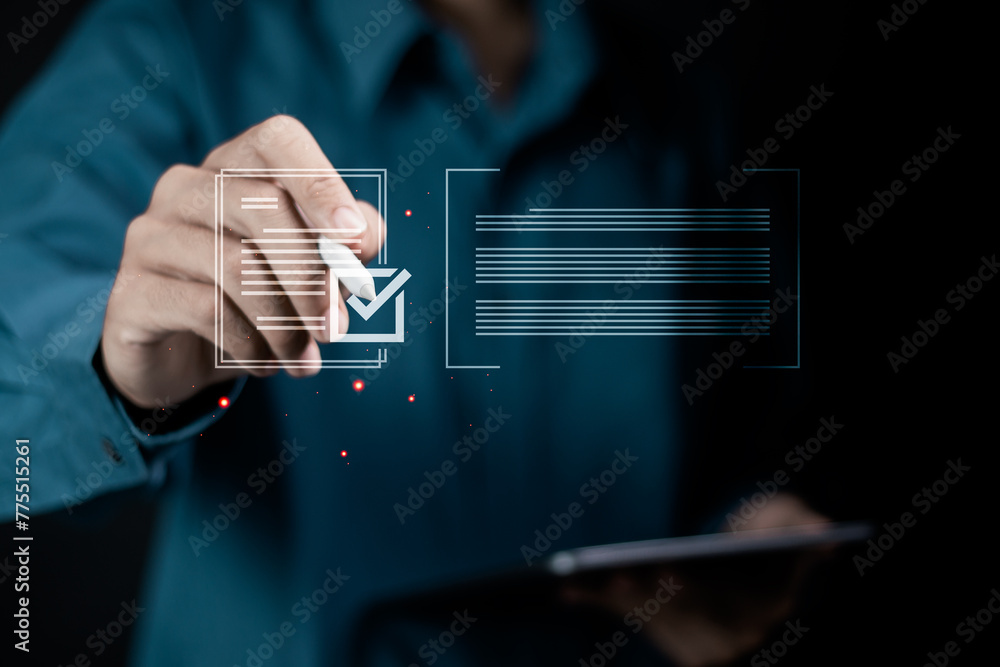 Compliance rules and law regulation policy for business organization on virtual screen. Enforcement of laws, regulations, and standards.