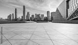 Empty square floors and city skyline with modern buildings in Guangzhou