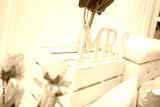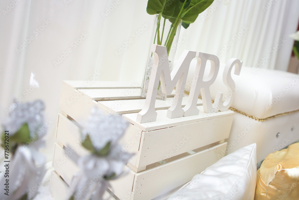 Beautifully decorated wedding with flowers and MR&MRS letters.