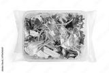 Mix salad - Isolated on White Background - plastic Package Wrapped in Clear Plastic - Top View, Macro Close Up - Isolated on White Background