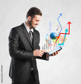 Businessman holding a tablet with growing graphics
