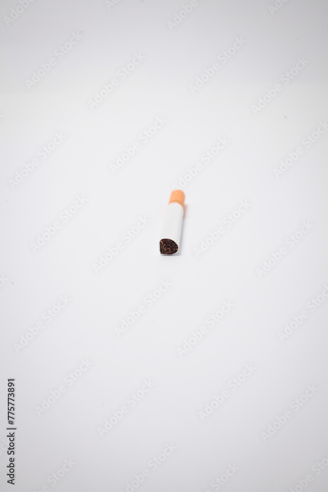 Cigarette isolated on a white background. World No Tobacco Day concept stop smoking. Selective focus.