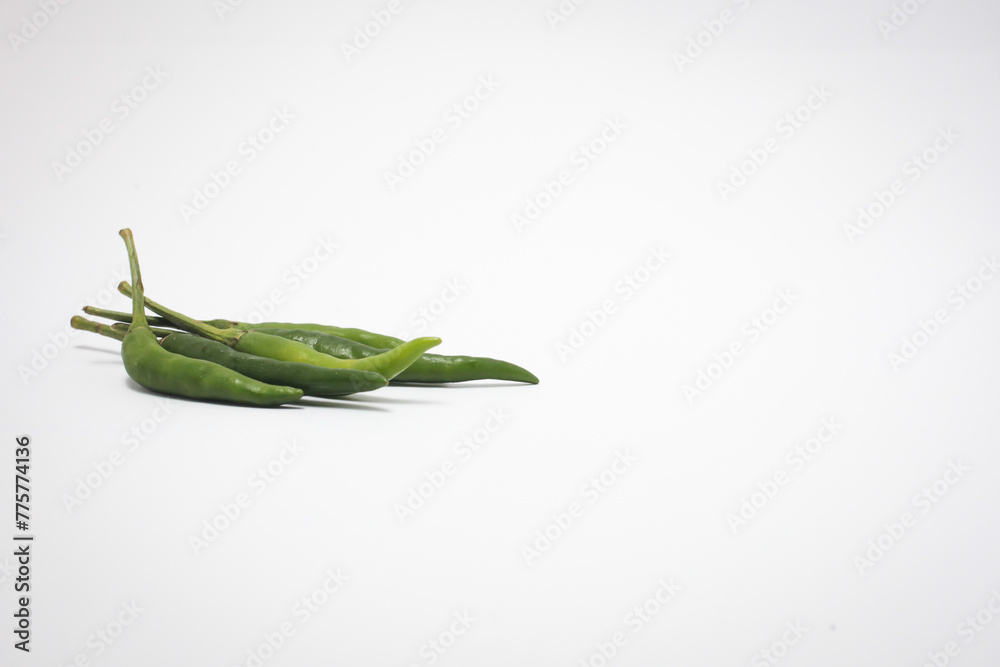 Green chili pepper isolated on a white background. Close up image and selective focus.