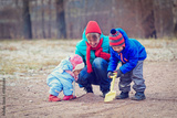 mother with kids playing in winter