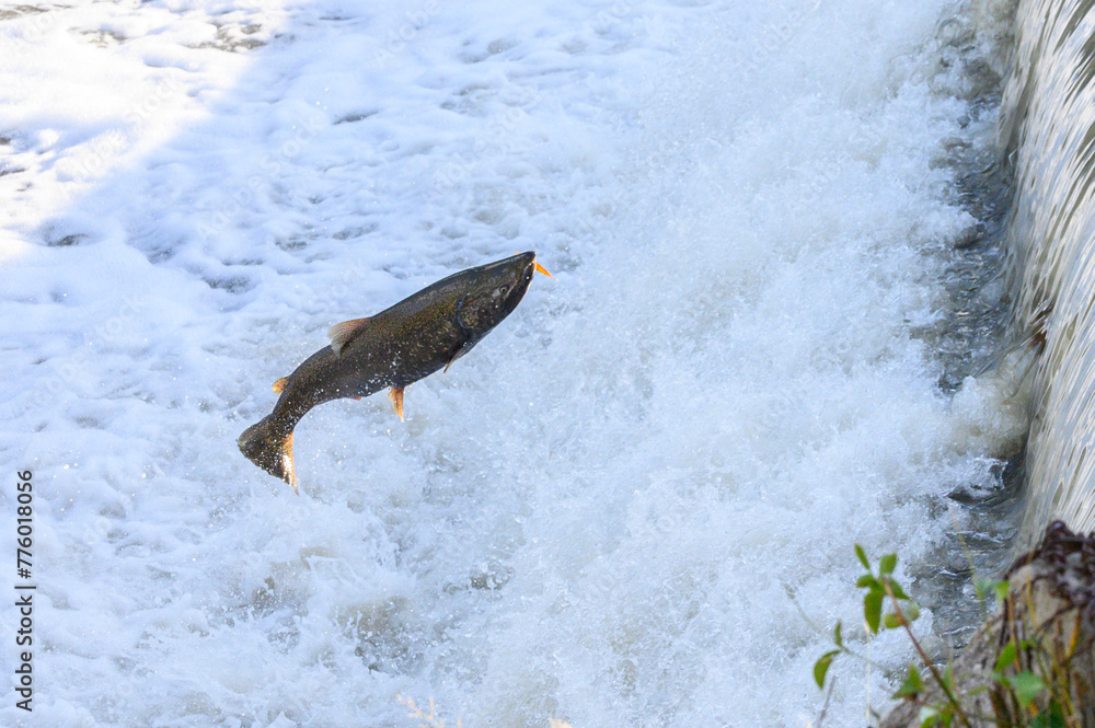 Salmon Run on the Humber River at Old Mill Park in Canada