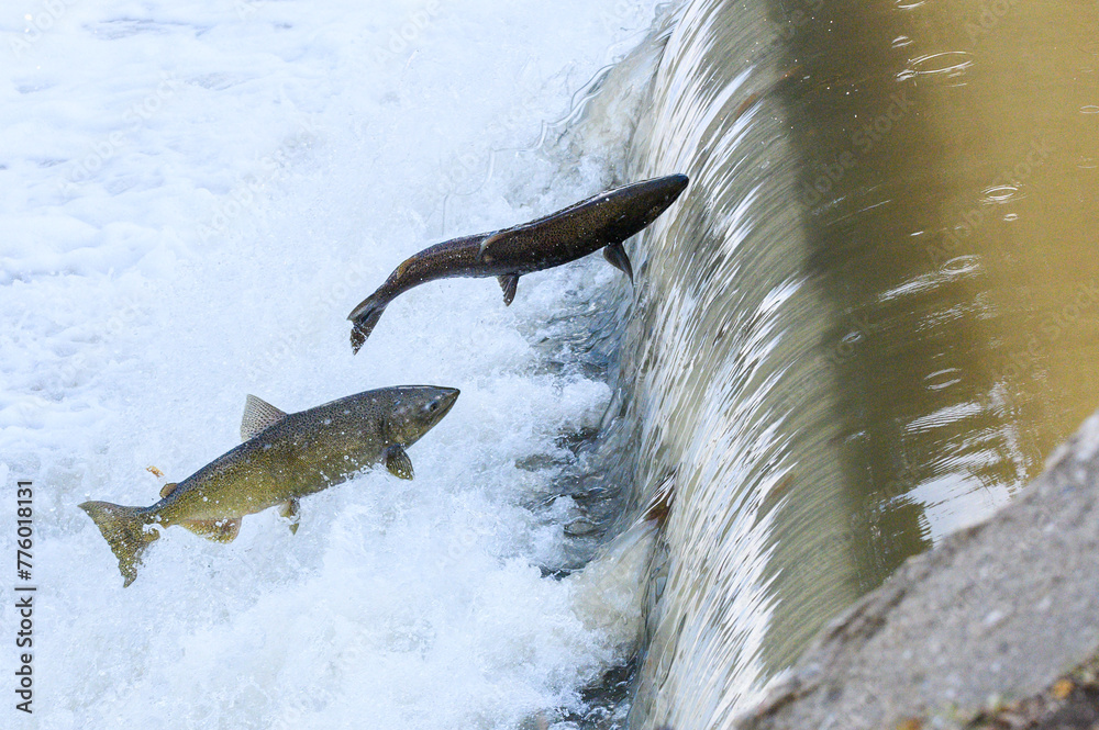 Salmon Run on the Humber River at Old Mill Park in Canada