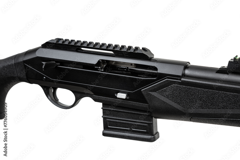 Semi-automatic rifled carbine. Hunting rifle with a plastic butt. Isolate on a white background.