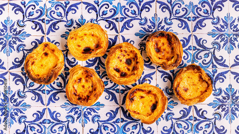 Egg tart, traditional Portuguese dessert, pastel de nata.