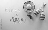 Cinco de Mayo holiday background made from maracas, mexican blanket stripes or poncho serape and hat on pastel background.