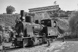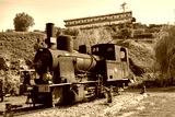 old train stay at the Railway station in the town of Peso da Regua on the Douro river, east of Porto in Portugal in Europe. Portugal, Regua