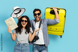 Happy Couple Traveling With Map And Suitcase, Summer Vacation, Holiday Trip, Adventure, Tourism