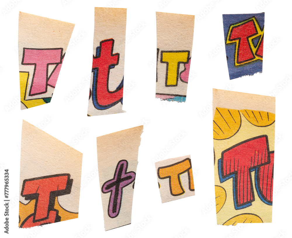 Ransom comics font type T from printout comics, HQ, cutout, collage element for graphic design, png isolated on transparent background