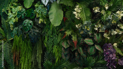 Group of dark green tropical leaves background, Nature Lush Foliage Leaf Texture, tropical leaf