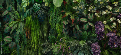 Group of dark green tropical leaves background, Nature Lush Foliage Leaf Texture, tropical leaf