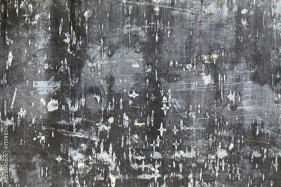Unclean black wall, texture, background. Dark, unkempt wooden surface with traces of white paint. Textured worn surface with imitation of antiquity. Chaotic pattern on the cladding of an old fence