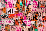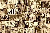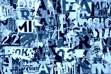 Collage of many numbers and letters ripped torn advertisement street posters grunge creased crumpled paper texture background placard backdrop surface