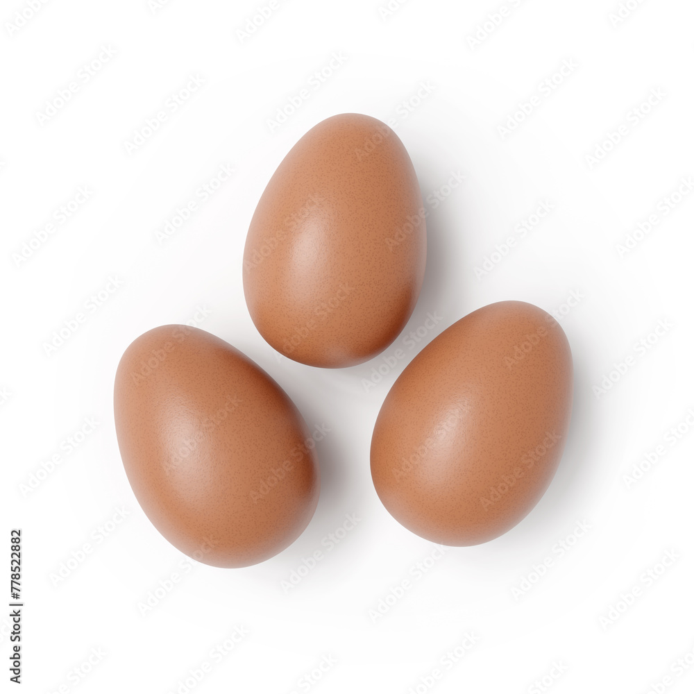 Three Brown Eggs Textured White Background with Shadow Close-up