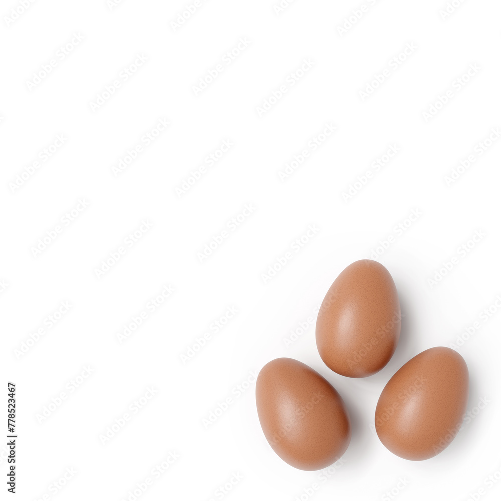 Three Brown Eggs Textured White Background with Shadow Square Size for Social Media