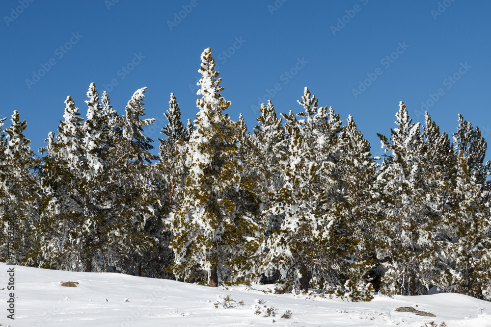 Paisaje Pinos Albares nevados. Pinus sylvestris L.