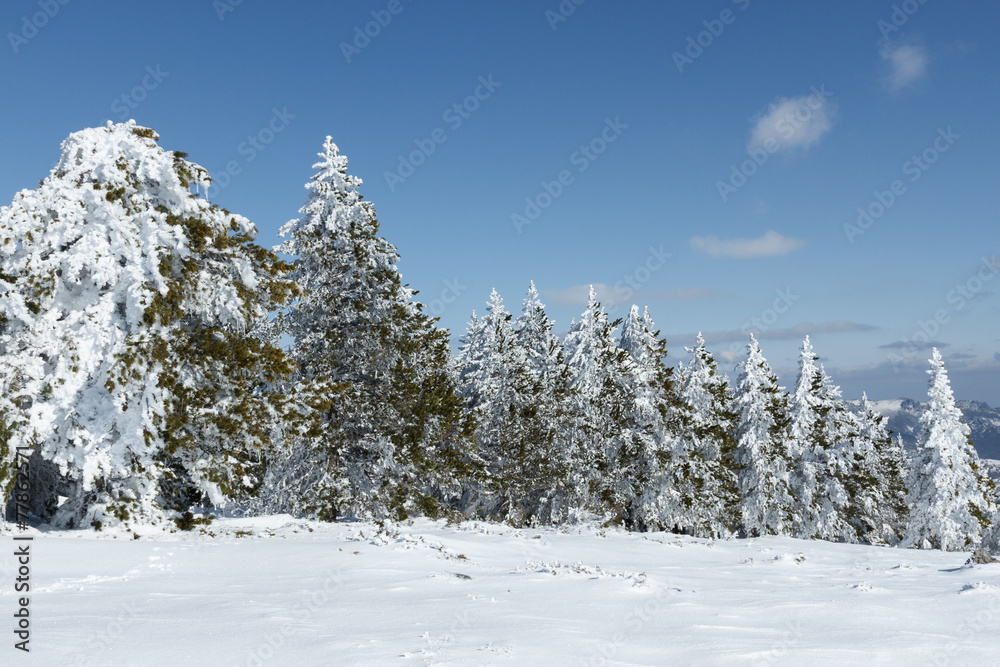 Paisaje Pinos Albares nevados. Pinus sylvestris L.