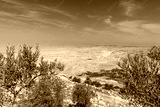 View from the memorial Mount Nebo towards the Dead Sea and Israel. Jordan. Horizontally.