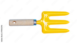 Yellow Shoveling fork isolated on white background.Clipping path.
