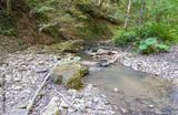 Morning on a mountain river, walking, awakening in nature summer sunny mood.