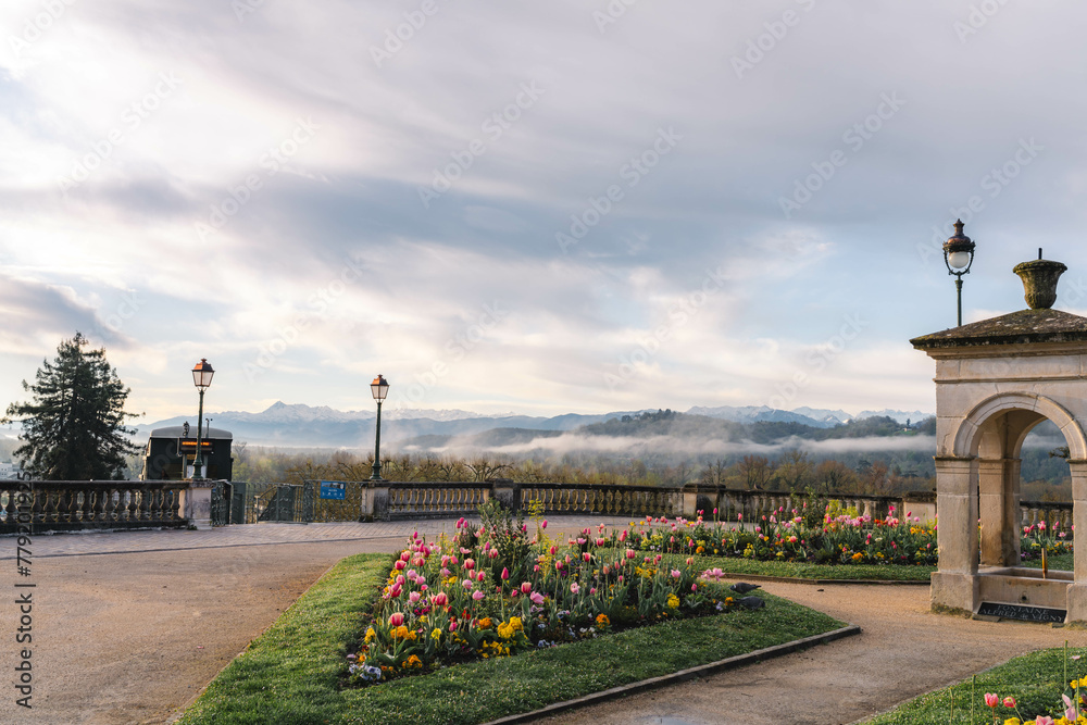 Place Royale and its old funicular in Pau during spring season / France