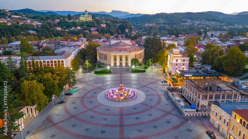 Sunrise panorama view of central square in Kutaisi, Georgia