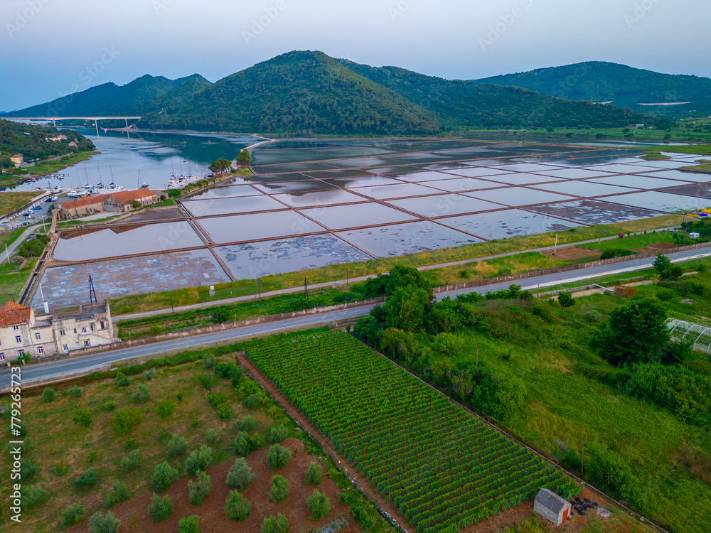 Aerial view of salt pans at Ston in Croatia