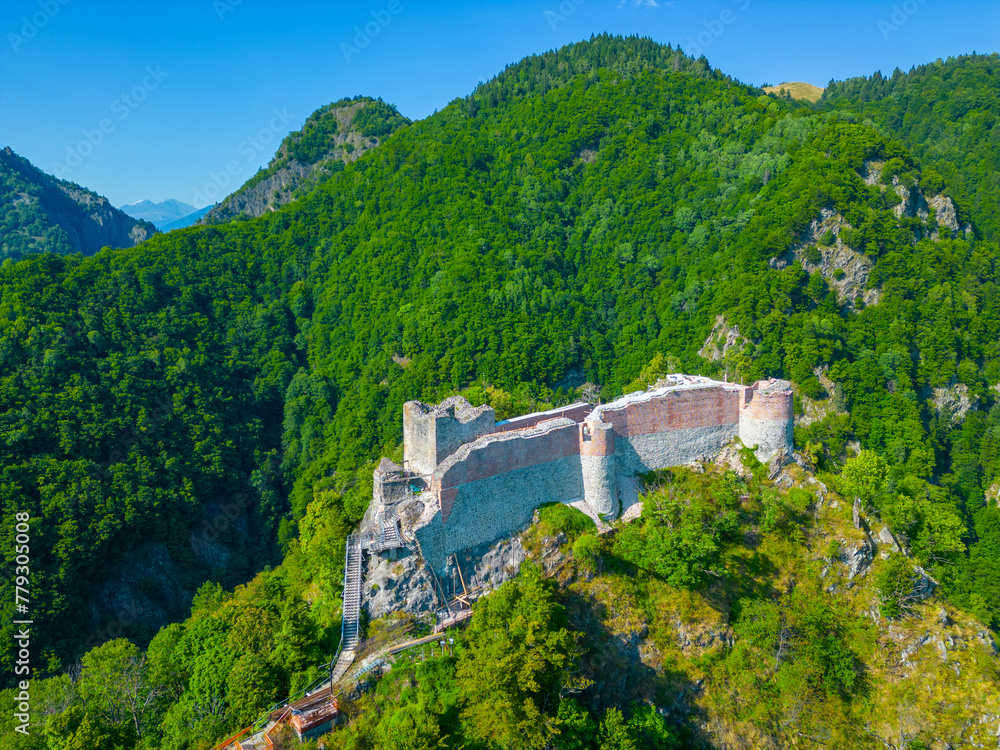 Panorama view of Poenari Citadel in Romania