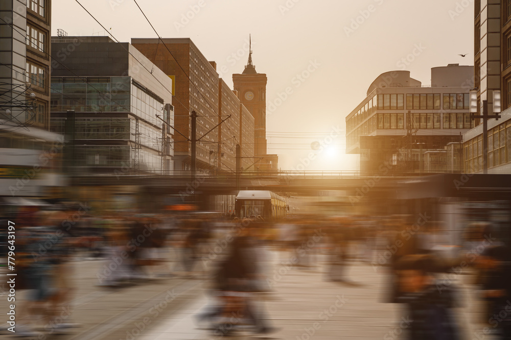 Berlin city life. People crowd at Alexanderplatz.